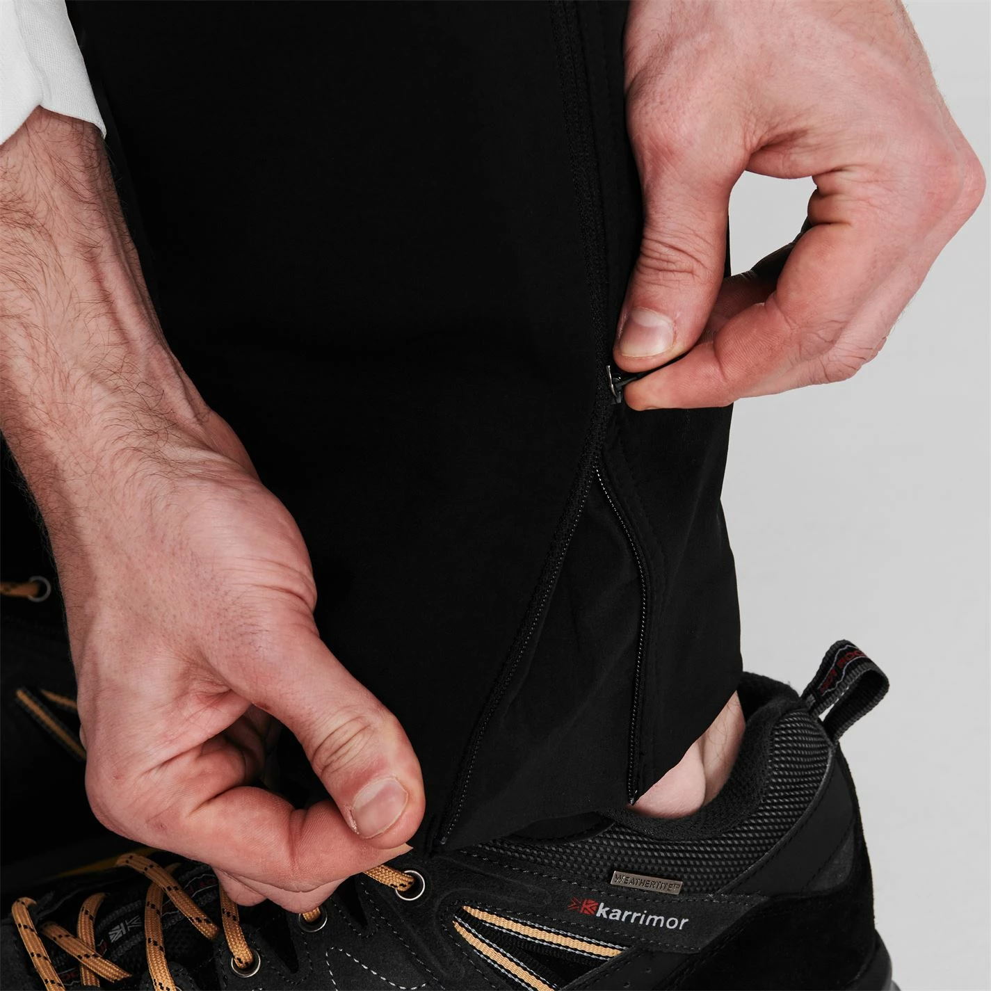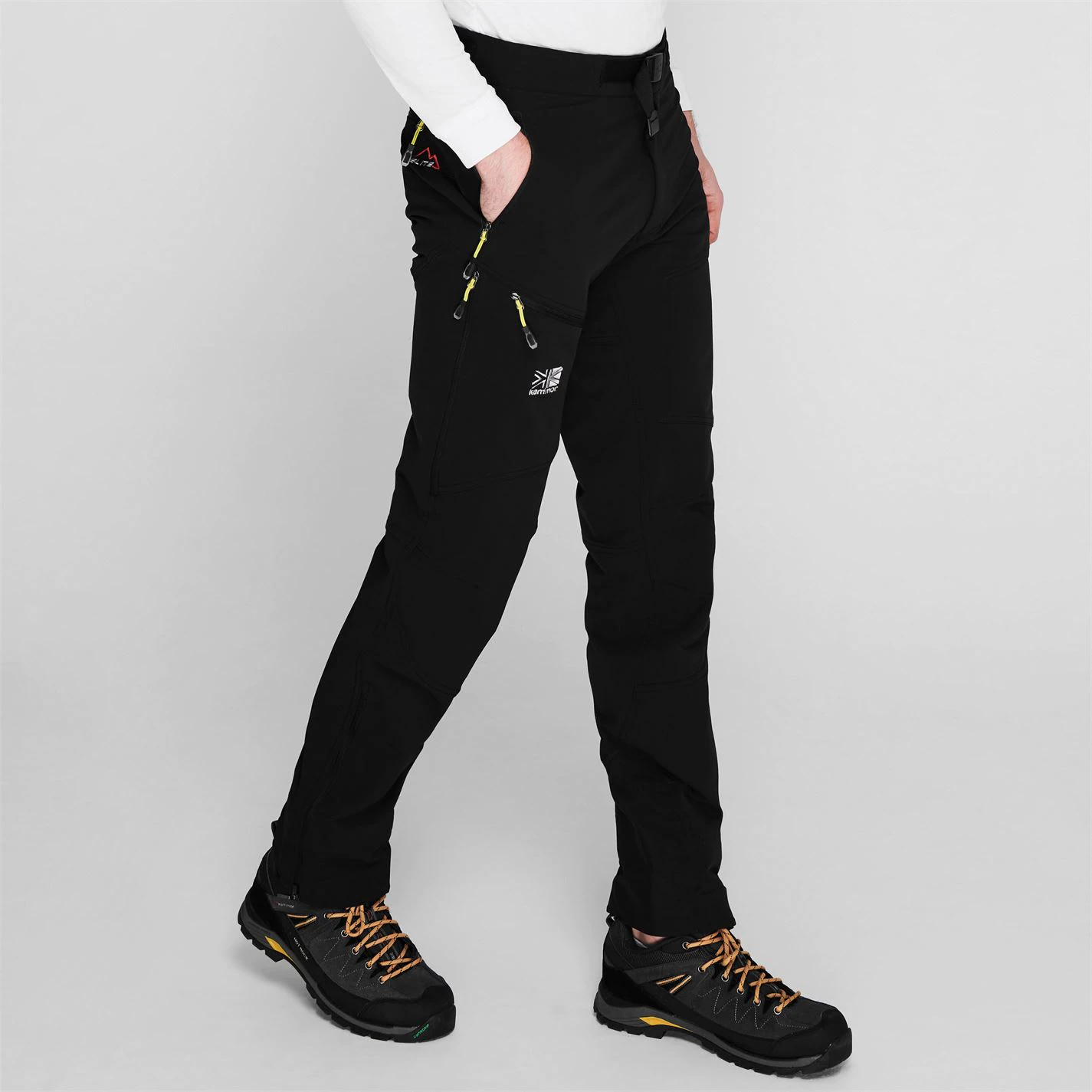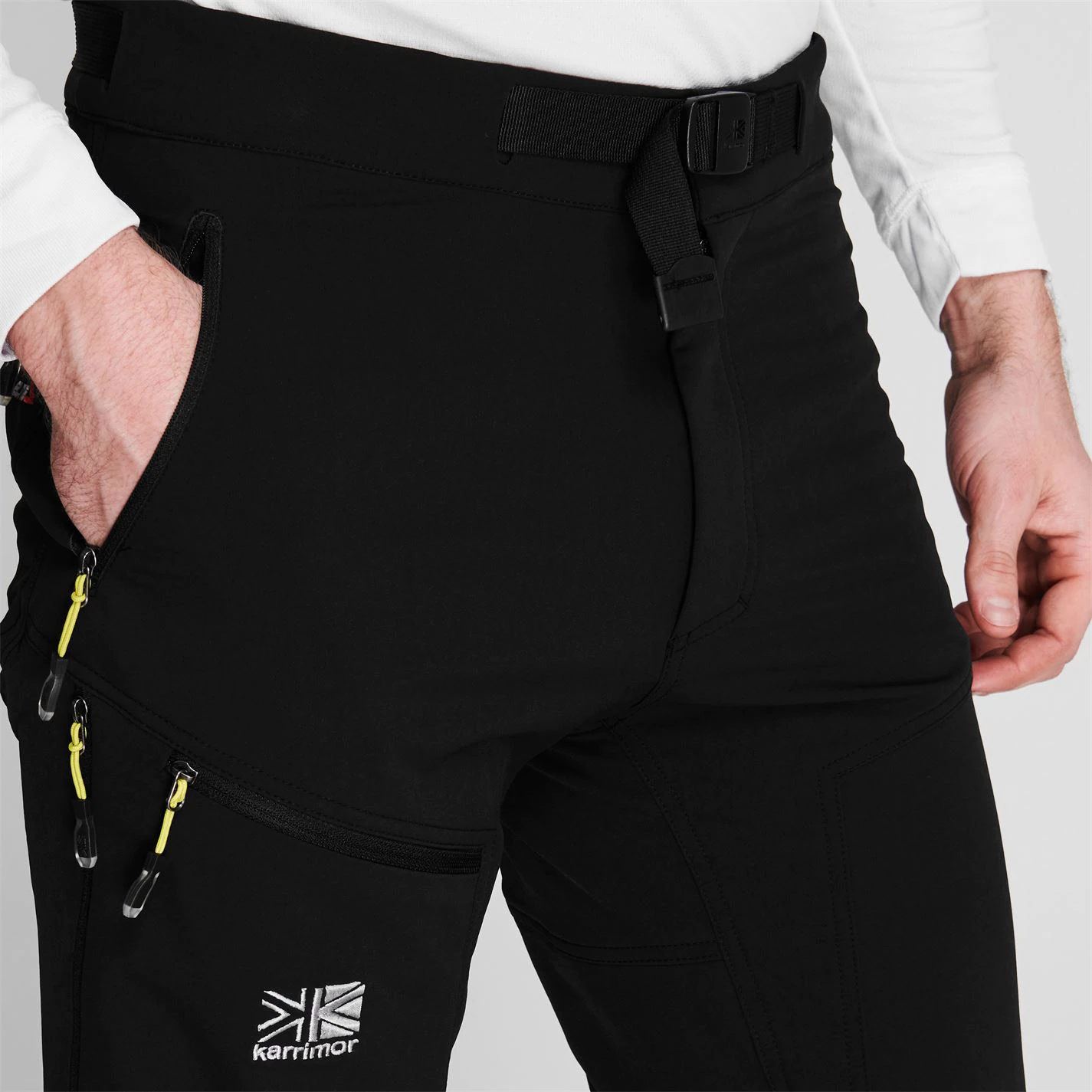 These Karrimor alpiniste softshell trousers are crafted for rugged conditions with water resistant stretch fabric. They feature an integrated belt as well as 4 pockets and are a midweight construction. These trousers are designed with a signature logo and are complete with Karrimor branding.
