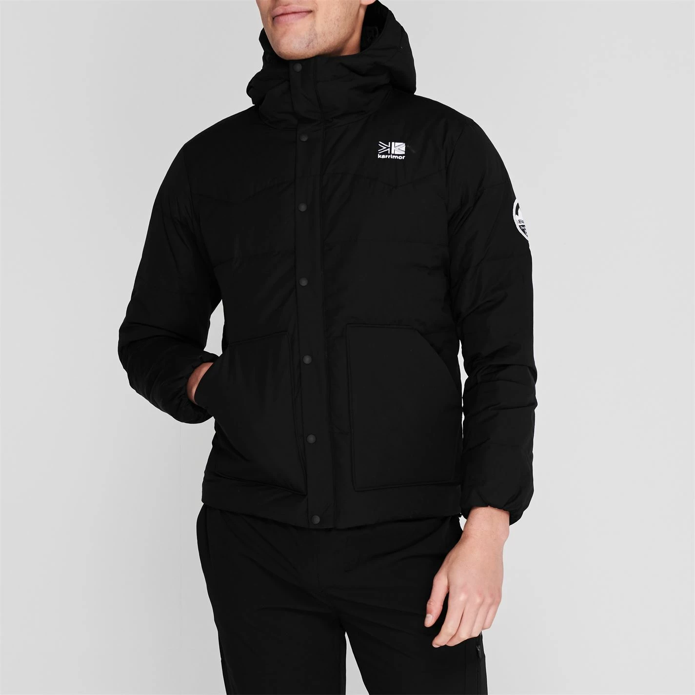 This Karrimor Eday Parka Jacket is crafted with full zip fastening and long sleeves for a classic look. It features a hood and is a 2 pocket style. This jacket is a padded construction designed with a signature logo and is complete with Karrimor branding.