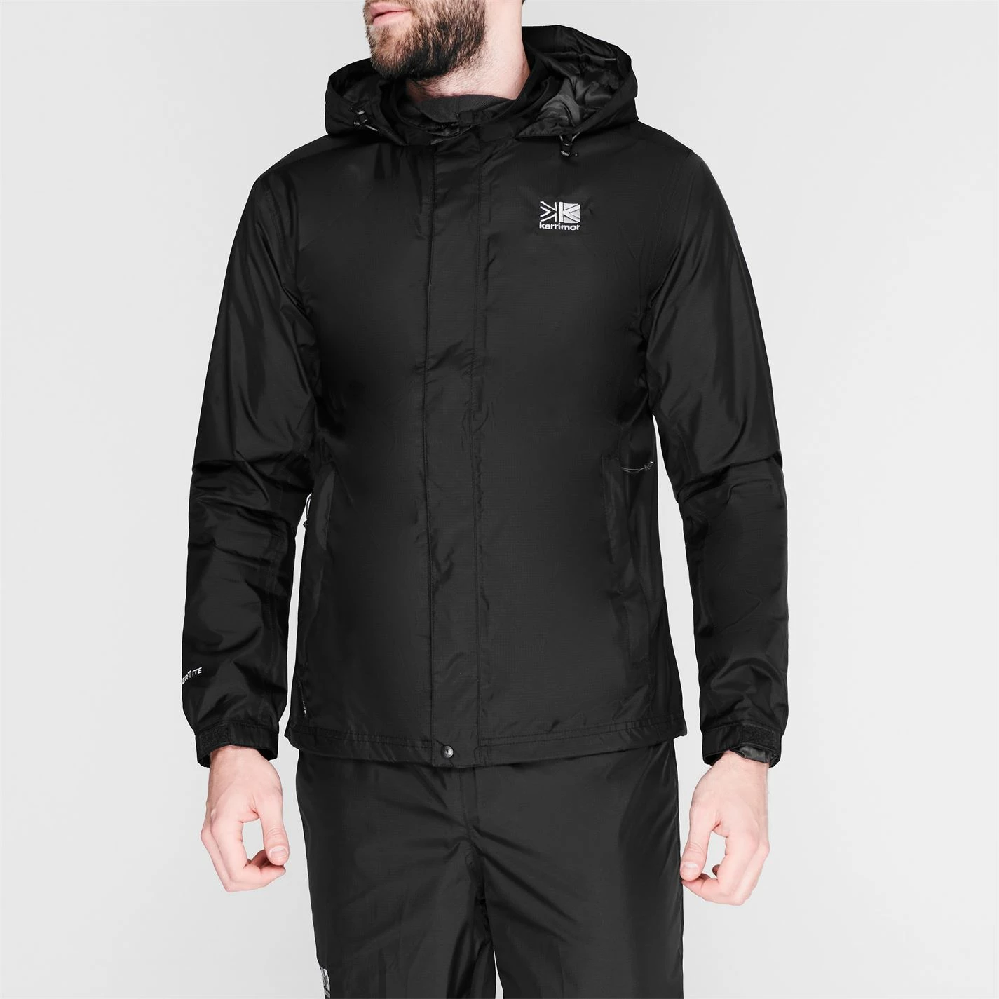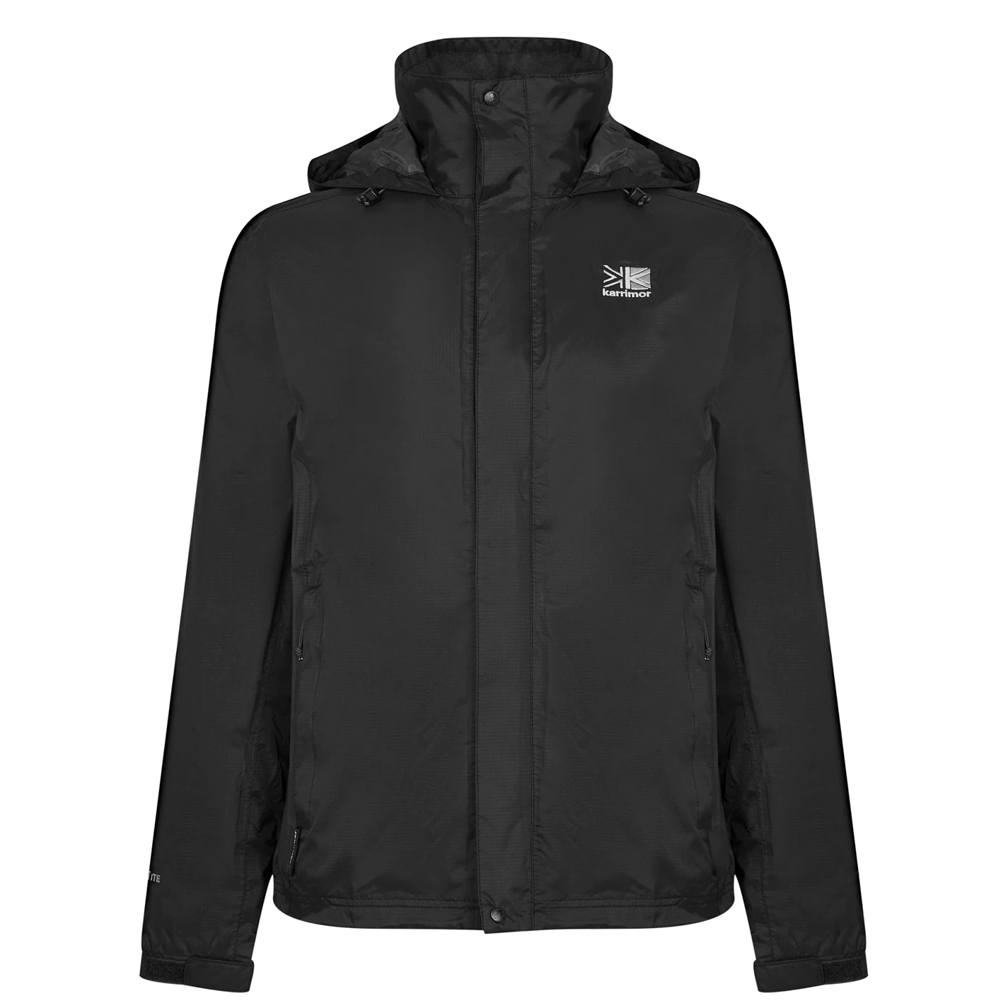 This Karrimor Jacket benefits from a zip up front with hook and loop fasteners for adjustability, with a press stud to the collar, long sleeves with elasticated hems offer a secure fit and has Weathertite technology for durable water resistance with a stowaway hood for enhanced protection. The membrane offers 10k 10k waterproof breathable properties. This Karrimor jacket features two zipped pockets for secure storage with a mesh inner for breathability, packing away into the pocket and is complete with the Karrimor branding.