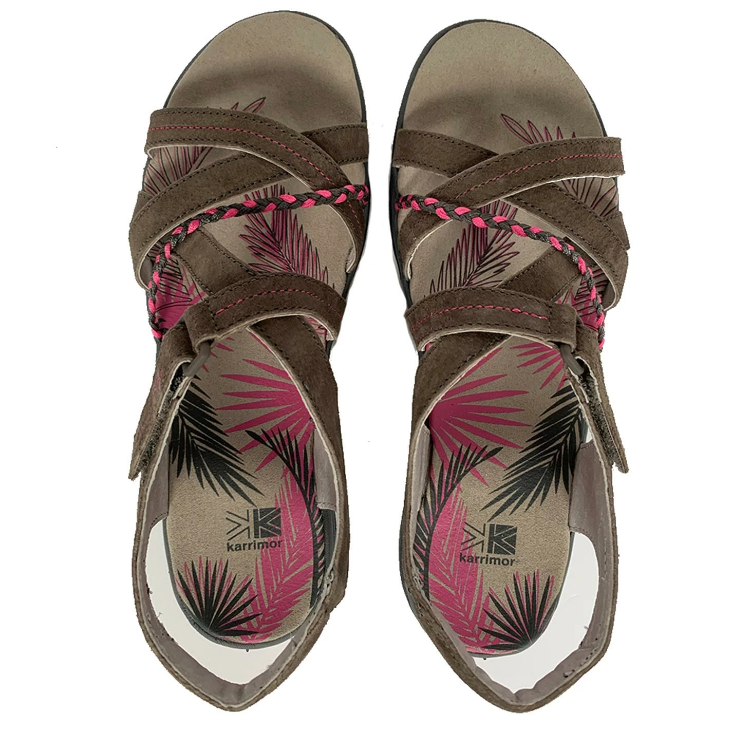 These Ladies Karrimor Tobago Sandals are designed with comfort in mind. They are crafted with a contoured footbed, cushioned midsole and soft lined straps – all of which ensure a comfortable fit all day long. A Vibram outsole is textured to provide superior traction on the most awkward of terrains. The look is completed with Karrimor branding.