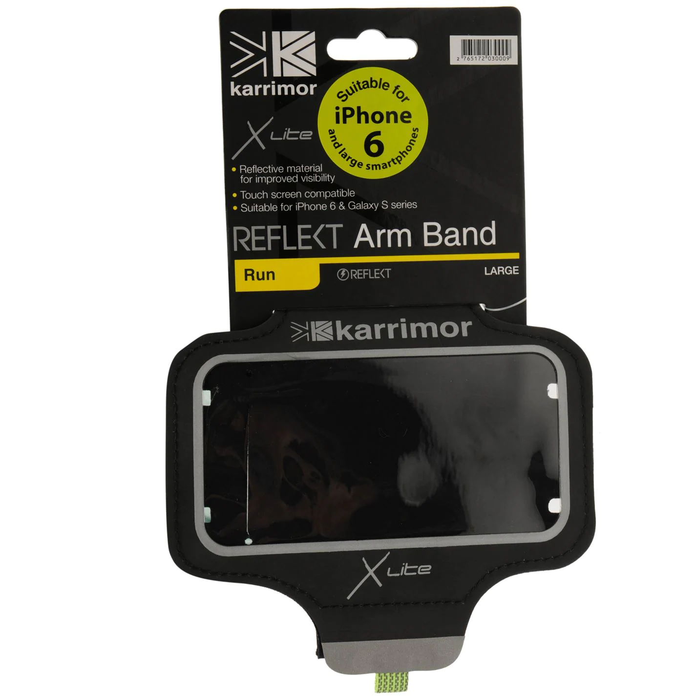 The Karrimor X Lite Reflect Arm Band is crafted with a lightweight construction that is reflective to improve visibility in poor light weather conditions. A hook and loop fastening is featured to allow for an adjustable , customised fit. It’s transparent phone pocket is touch screen compatible and fits iPhone 6, 7 and Galaxy S series phone. This arm band is finished off with a discreet key pocket and Karrimor branding. Now features a cable tidy for earphone wires.