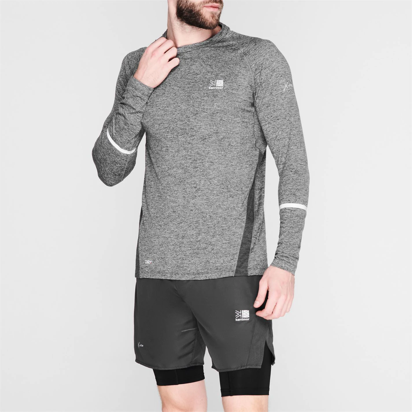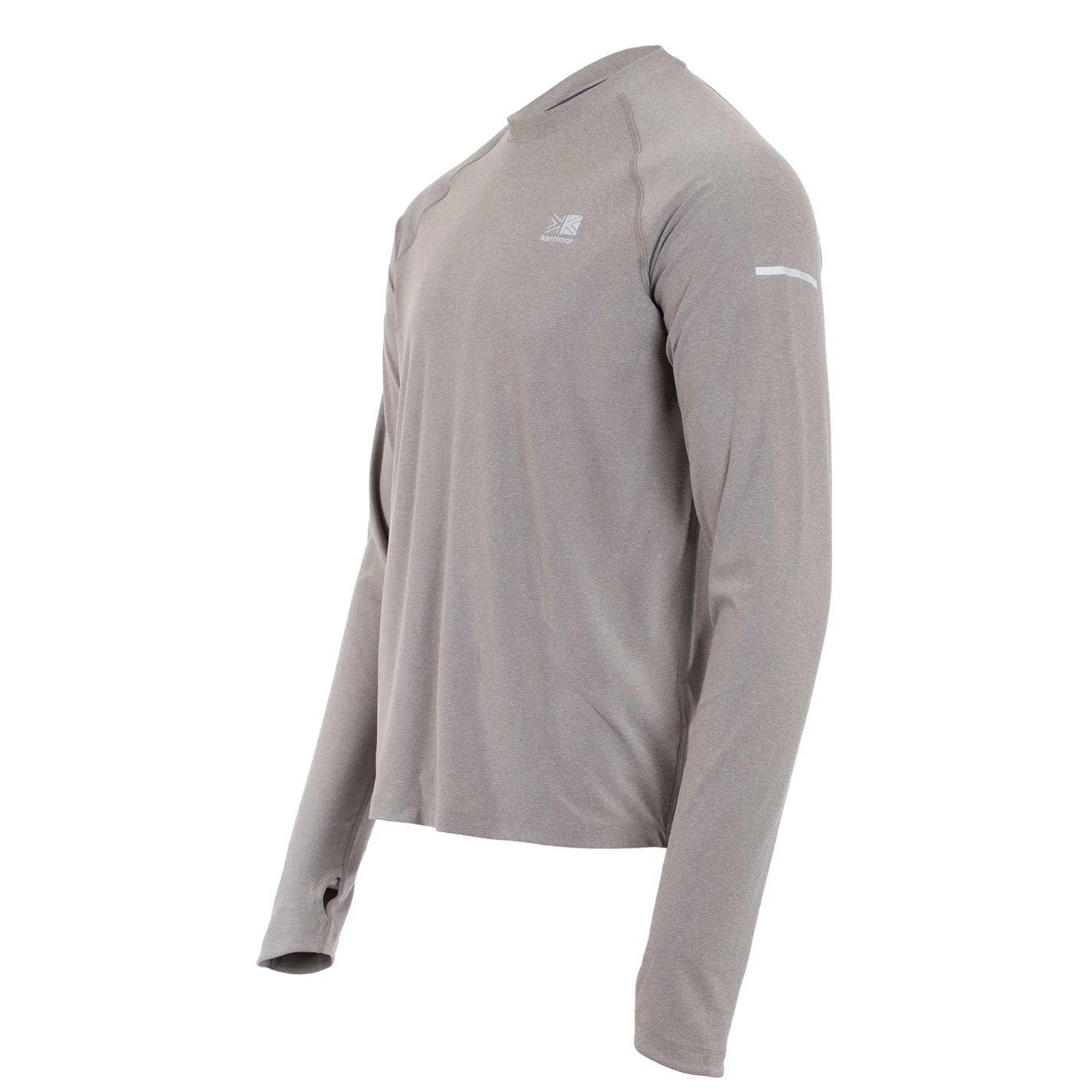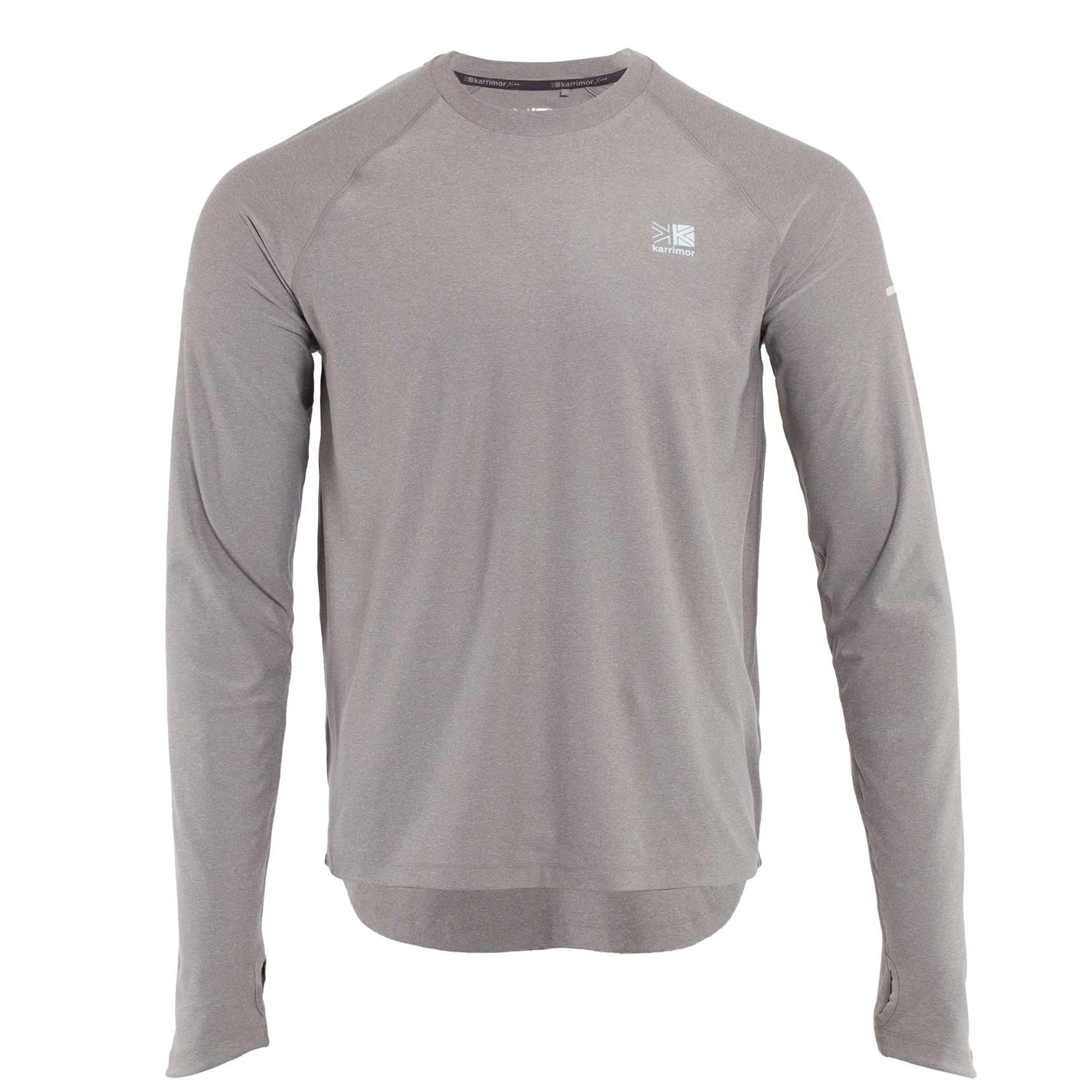 This Karrimor XLite Long Sleeve T Shirt is crafted with long sleeves and a crew neck. It features flat lock seams to prevent chafing and is a lightweight construction. This t shirt is a block colour with reflective detailing for better visability. It is designed with a printed logo and is complete with Karrimor branding.