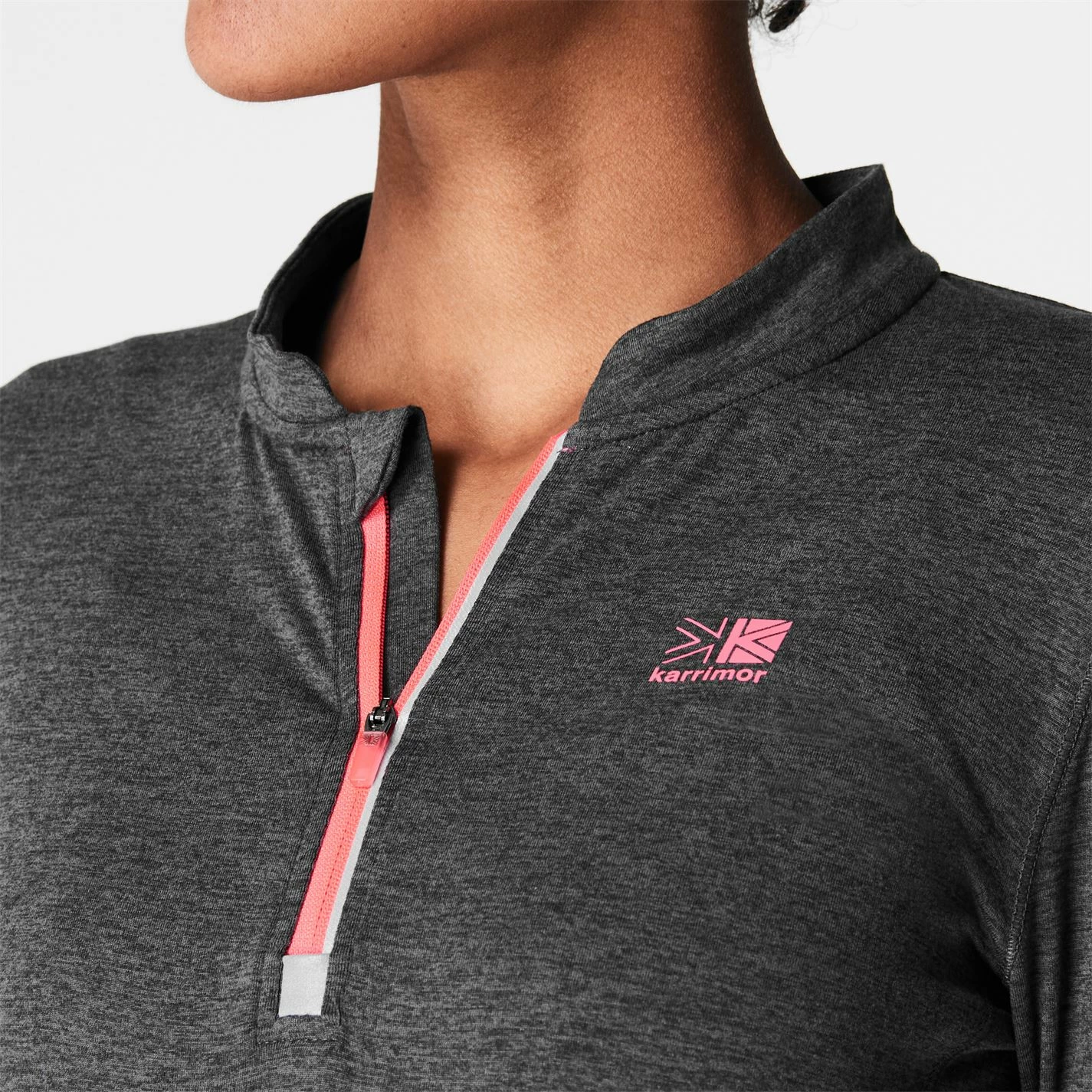 This Karrimor XLite MI Zip Top is an over the head design with half zip fastening. It is crafted with long sleeves and features flat lock seams for serious comfort. This top has XLite technology and is a fitted, lightweight construction. It is a block colour with reflective detailing. This top is designed with a printed logo and is complete with Karrimor branding. The ultimate workout companion this season!